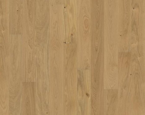 Różowo-blond niuanse tej ekskluzywnej, jednopasmowej podłogi z kolekcji European Naturals są wzmocnione przez równomierne zróżnicowanie kolorów między deskami. Powierzchnia użytkowa jest wykonana z jednego kawałka drewna, aby nadać mu żywy, organiczny wyraz. Jedwabiście matowe wykończenie lakieru nadaje podłodze polerowany wygląd i podkreśla naturalny charakter drewna.
